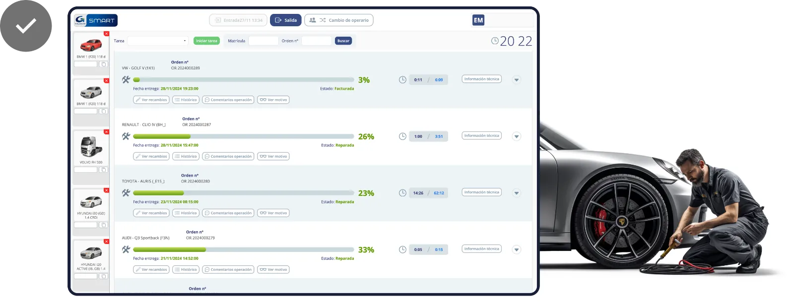 Accede al historial del vehículo, información técnica y el motivo de su ingreso al taller.